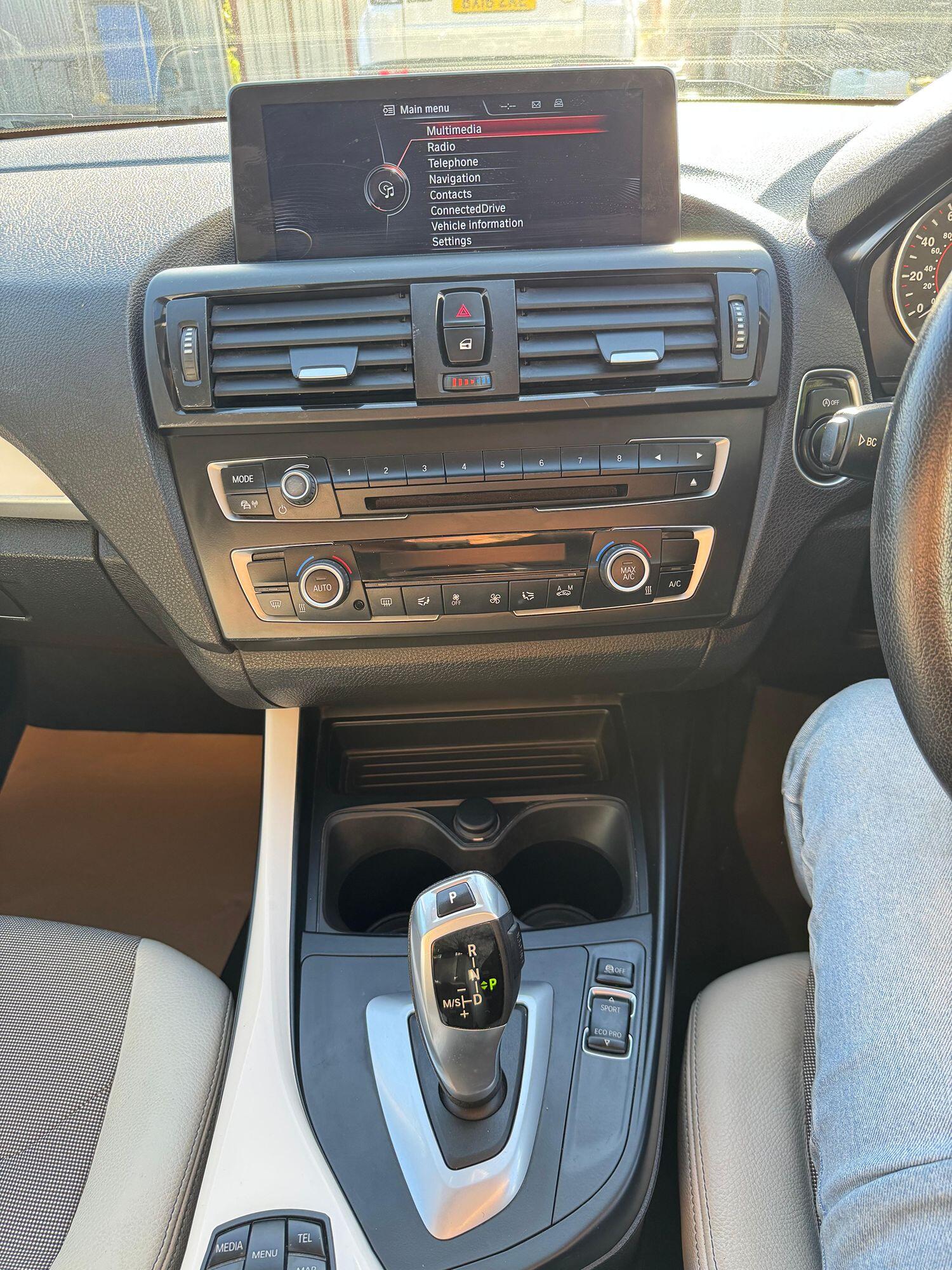 12V Power Socket - Centre Console, 12V Power Socket - Passenger Footwell, 6.5in Colour Display Screen, Auxiliary Input, BMW Professional Radio - Single CD and MP3, DAB Digital Radio, Shark Fin Aerial, Speakers x6, Brake Pad Wear Indicator, Check Control Warning System, Drive Performance Control with ECO PRO - Comfort and Sport Modes, Lights-on Audio Warning, OBC - On-Board Computer, Optimum Shift Indicator, TPMS - Tyre Pressure Monitoring System, 16in Alloy Wheels - Light Star Spoke - 377, BMW Mobility System, Bumpers - Body Colour, Door Handles - Body Colour, Door Mirrors - Body Coloured, Door Mirrors - Electric and Heated, Electric Windows - Front and Rear with Open-Close Fingertip Control, Heat Protection Glazing with Green Tint, Heated Windscreen Washer Jets, Kidney Grille - Chrome with Black Vertical Slats, Locking Wheel Bolts, Roof Mouldings - Body Colour, Welcome Lighting, Daytime Running Lights, Follow Me Home Headlight Function, Halogen Headlights, Headlights - Beam Throw Control, High Level Third Brake Light, Air Conditioning - Manual, Armrest - Front and Rear Integrated into Door Trim, Cup Holders x2, Door Sill Finishers - BMW Designation - Black, Floor Mats - Velour, Gear Knob - Leather, Grab Handles - Integrated in Roof Lining x4, Handbrake - Leather, Head Restraints - Rear and Folding, Interior Lighting - Front and Rear Centre, Interior Trim - Satin Silver, Luggage Compartment - Lashing Eyes, Personal Profile, Seats - Driver Manual Adjustment, Seats - Passenger Manual Adjustment, Seats - Split Rear 60-40, Smokers Package Deletion, Start-Stop Button with Comfort Go Keyless Engine Start, Steering Column with Manual Reach and Rake Adjustment, Steering Wheel - 3-Spoke Leather, Storage Compartment in Rear Centre Console, Sun Visors with Illuminated Vanity Mirrors and Ticket Pocket, ADB Sport - Active Differential Brake, Power Steering - Electric, ABS - Anti Lock Braking System, ASC - Automatic Stability Control, Airbags - Curtain Head Protection system, Airbags - Driver, Airbags - Front Side, Airbags - Passenger, Airbags - Passenger Deactivation, Alarm System Thatcham 1 with Remote Control, Battery Safety Cut Off, Brake Assist, Brake Drying, CBC - Cornering Brake Control, Central Locking - Remote, Child Proof Locking System - Rear Doors, Child Seat ISOFIX Attachment - Rear, Crash Sensor - Activating Central Locking-Hazard Warning Lights-Fuel Cut Off, DBC - Dynamic Brake Control, DSC - Dynamic Stability Control Plus, DTC - Dynamic Traction Control, Dynamic Brake Lights, Engine Immobiliser, First Aid Kit, Hill Start Assist, Side Impact Protection, Warning Triangle
